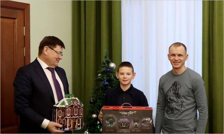 Шарик с желанием 12-летнего Артёма из Новосибирска полномочный представитель снял с ёлки в Кремле перед заседанием Государственного Совета. Артём – жизнерадостный и общительный парень. Год назад начал заниматься кикбоксингом и уже достиг хороших результатов, став призёром нескольких соревнований. Ещё одно увлечение мальчика – автомобили, ему с детства интересно как они устроены. Полпред исполнил загаданное Артёмом желание – мальчик получил современный игровой руль для компьютера и теперь он сможет учиться водить машину, хотя пока и в виртуальном мире.