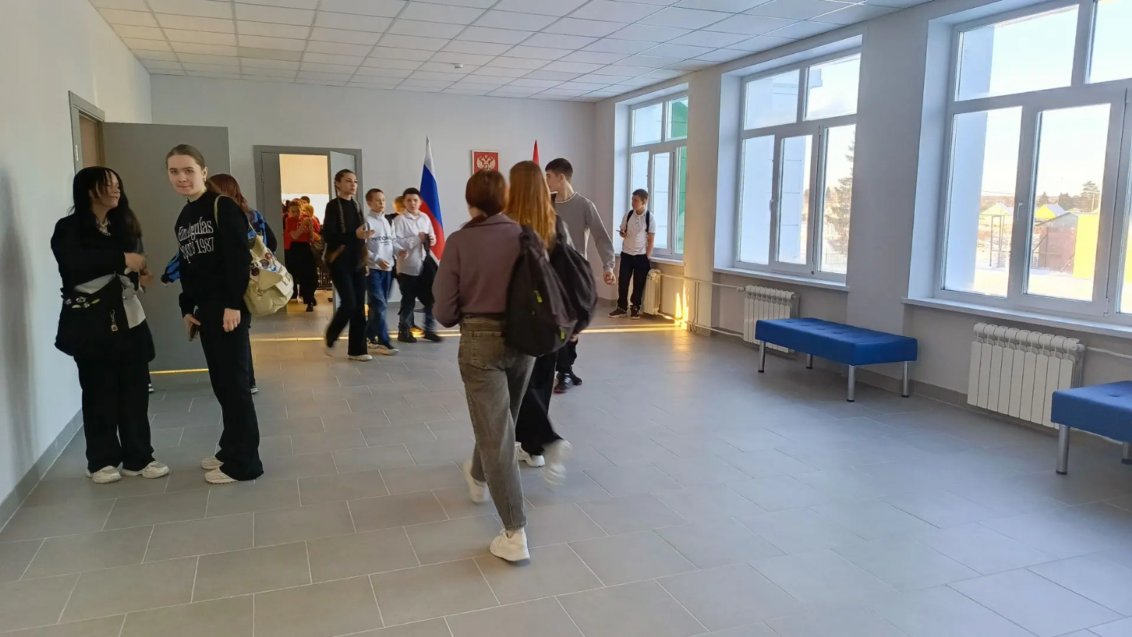 В фойе лицея шумно. Учителя встречают воспитанников и разводят по классам. Родители волнуются и уточняют расписание. Для многих это как первый раз в первый класс, хотя и в середине учебного года. В большой компании учеников и родителей и я восхищаюсь современным дизайном прежнего, а по сути нового лицея. Просторный холл украшен стильными элементами декора, далее - функциональный гардероб.