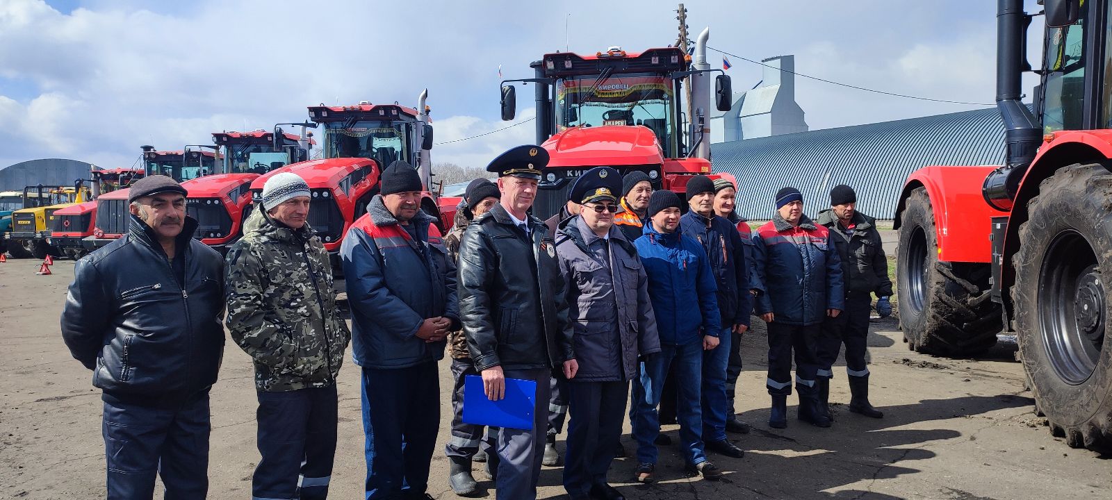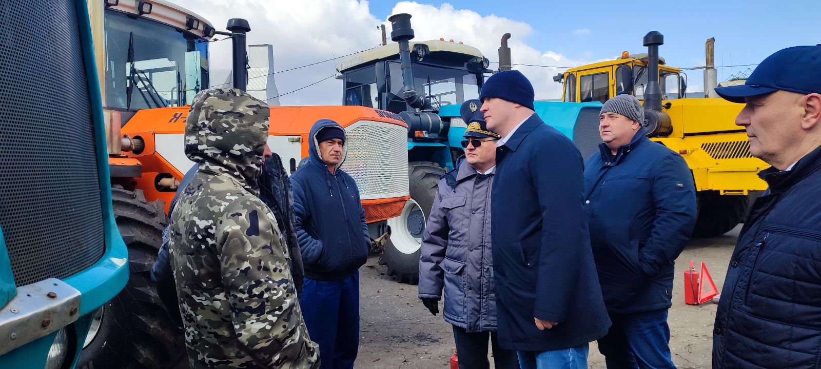 Далее глава региона в сопровождении министра сельского хозяйства Омской области Николая Дрофы, начальника областного управления Гостехнадзора Николая Самбурского и главы Крутинского муниципального района Василия Киселёва направляется к полевой технике на зерновой площадке тока. Именно здесь нынче решили провести смотр техники.